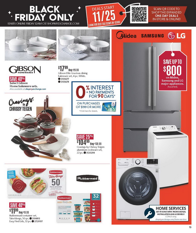 | AAFES | Home Garden | Up to $800 on Midea, Samsung and LG Major Appliances | P.13 | ||