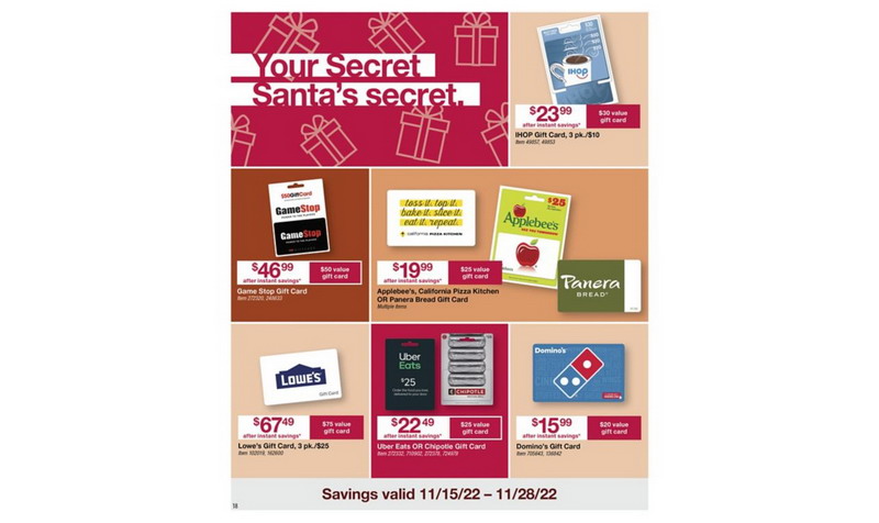 | BJ's | Miscellaneous | Applebees, California Pizza Kitchen OR Panera Bread Gift Card | 19.99 |