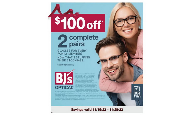 | BJ's | Health Beauty | $100 off complete 2 pairs Glasses For Every Family Member?Now That's Stuffing Their Stockings.select frames only | P.20 |