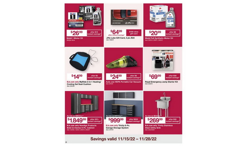 | BJ's | Miscellaneous | Mobil 1 Motor Oil | 26.99 | P.28 | |