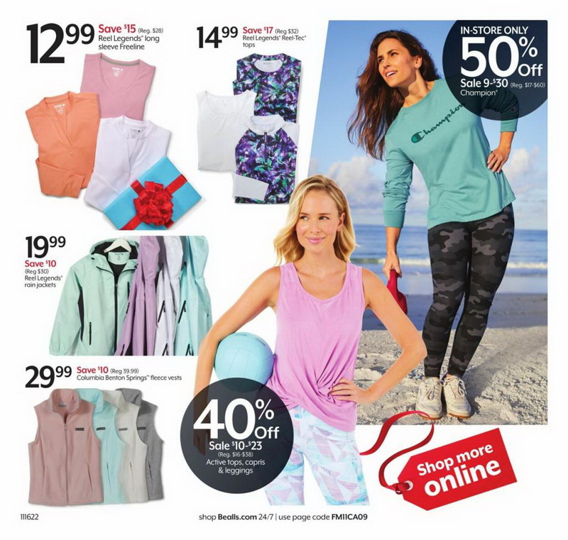 | Bealls Florida | Apparel Shoes | 40% off Active tops, capris & leggings | 10-23 |