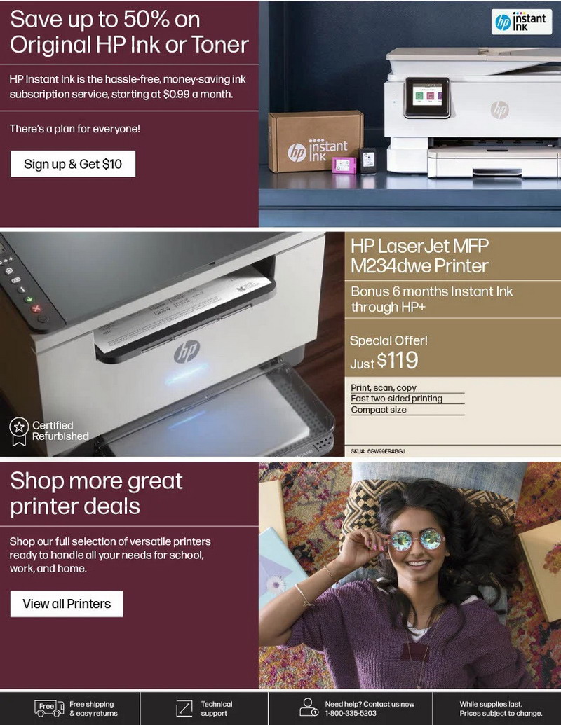 HP LaserJet MFP M234dwe Printer w/ bonus 6 months Instant Ink toner through HP+