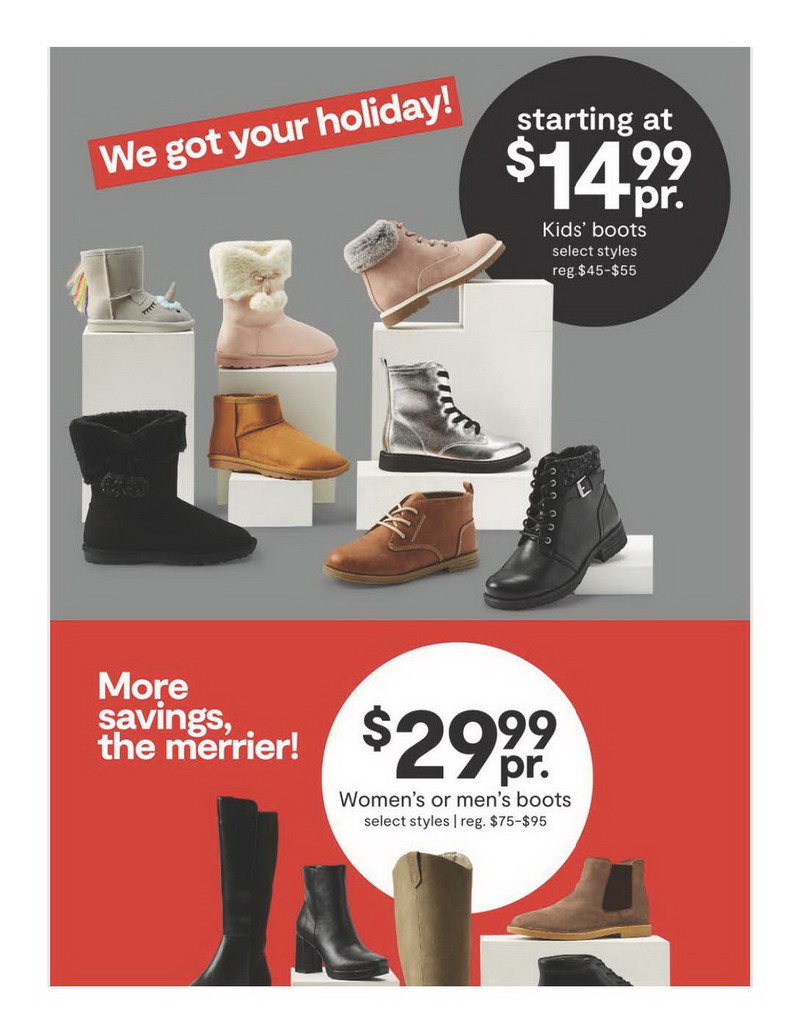 | JCPenney | Apparel Shoes | Womens & Mens Boots | 29.99 |