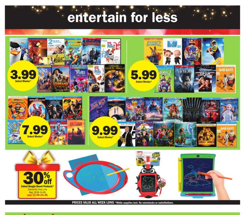 | Meijer | Movies, Music, Books | Select Movies | 7.99 | P.19 | |
