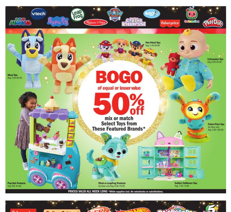 | Meijer | Toys | BOGO 50% off Bluey Toys |
