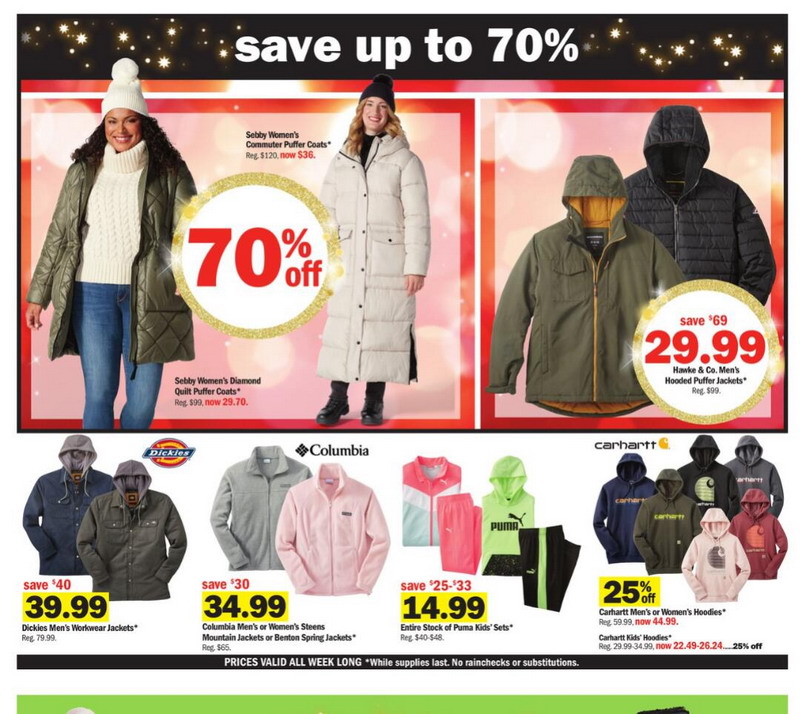| Meijer | Apparel Shoes | Hawke & Co. Men's Hooded Puffer Jackets | 29.99 |