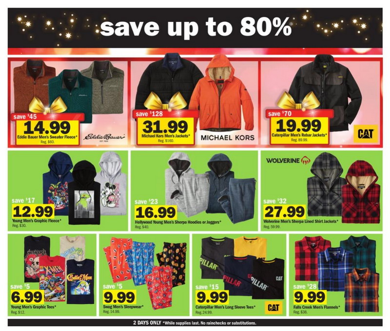 | Meijer | Apparel Shoes | Hollywood Young Men's Sherpa Hoodies or Joggers | 16.99 |