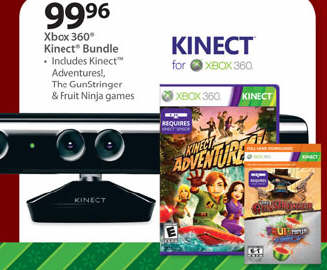 Xbox 360 Kinect Bundle w/ Kinect Adventures, The GunStringer & Fruit Ninja Games