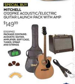 Mitchell O120PKE Acoustic/Electric Guitar Launch Pack With AMP