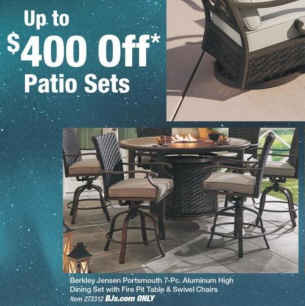 Berkley Jensen Portsmouth 7-Pc. Aluminum High Dining with Fire Pit Table and Swivel Chairs