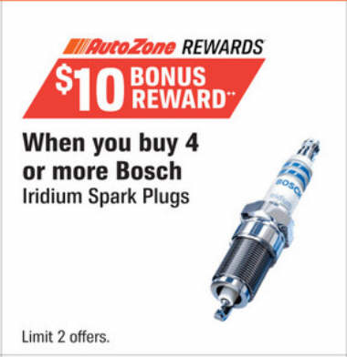 $10 Bonus Reward when you buy 4 or more Bosch Iridium Spark Plugs