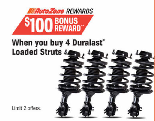 $100 Bonus Reward when you buy 4 Duralast Loaded Struts
