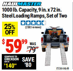 1000 lb. Capacity 9 in. x 72 in. Steel Loading Ramps, Set of Two