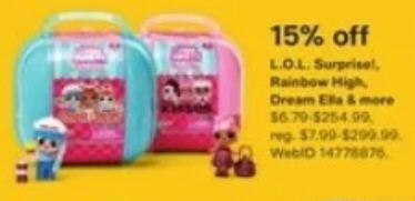 15% Off L.O.L. Surprise!, Rainbow High, Dream Ella & more