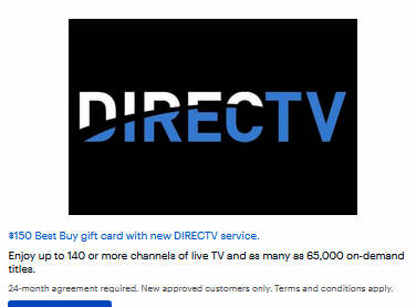 $150 Best Buy gift card with new DIRECTV service.