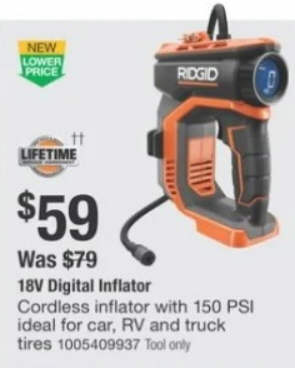 18V Cordless Digital Inflator (Tool Only)