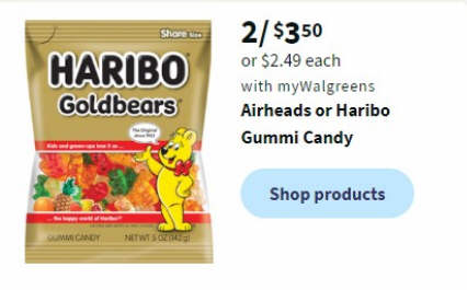 2/ $3.50 or $2.49 each Airheads or Haribo Gummi Candy