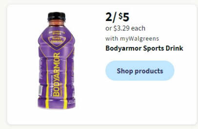 2/ $5 or $3.29 each with myWalgreens Bodyarmor Sports Drink