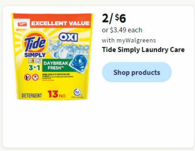 2/$6.00 or 1/$3.49 Tide Simply Laundry Care