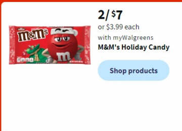 2/ $7 or $3.99 each M&M's Holiday Candy