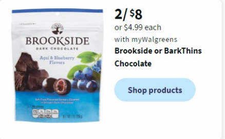 2/ $8 or $4.99 each with myWalgreens Brookside or BarkThins Chocolate