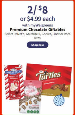 2/ $8 or $4.99 each with myWalgreens Premium Chocolate Giftables