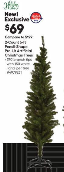 2-Count 6-ft Pencil-Shape Pre-Lit Artificial Christmas Trees