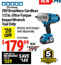 20V Brushless Cordless 1/2 in. Ultra Torque Impact Wrench - Tool Only