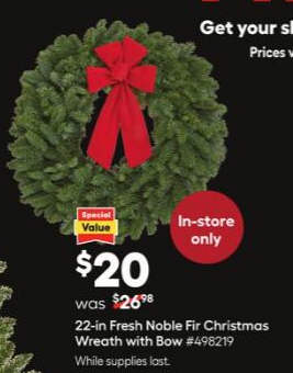 22-in Fresh Christmas Wreath with Bow 2 for $24