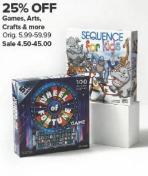 25% OFF Games, Arts, Crafts & more
