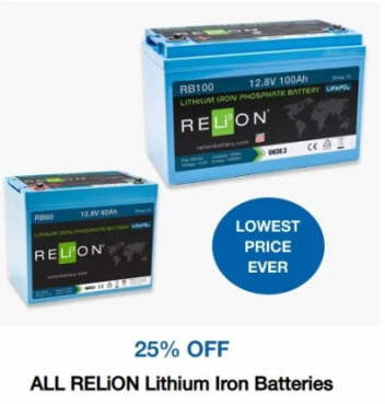 25% off ALL RELiON Lithium lron Batteries