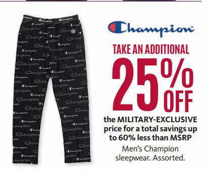 25% off the Men's Champion Sleepwear Military-Exclusive Price for a Total Savings up to 60% Less than MSRP
