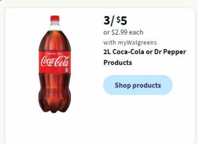 3/ $5 or $2.99 each with myWalgreens 2L Coca-Cola Products