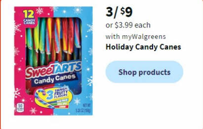 3/ $9 or $3.99 each with myWalgreens Holiday Candy Canes
