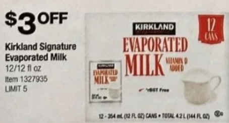 $3 off Kirkland Signature Evaporated Milk, 12 fl oz, 12-count