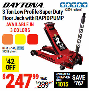 3 ton Low Profile Super Duty Floor Jack with RAPID PUMP, Candy Apple Metallic Red
