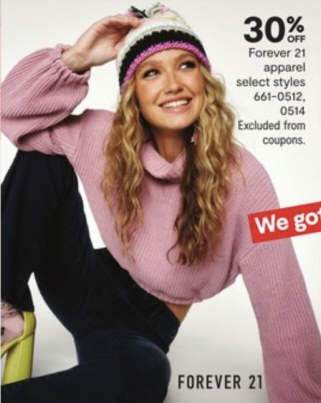 30% off Forever 21 Apparel
