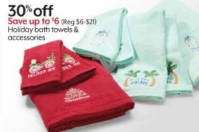 30% off Holiday bath towels & accessories