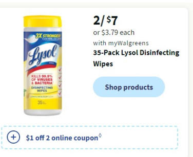 35-Pack Lysol Disinfecting Wipes: 2/ $7 or $3.79 each