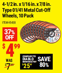4-1/2 in. x 1/16 in. x 7/8 in. Type 01/41 Metal Cut-off Wheel, 10 Pack