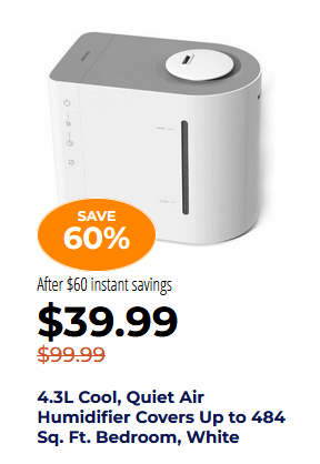 4.3L Cool, Quiet Air Humidifier Covers Up to 484 Sq. Ft. Bedroom, White