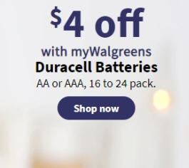 $4 off Duracell Batteries AA or AAA, 16 to 24 pack.