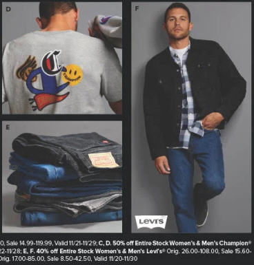 40% off Entire Stock Womens & Mens Levls. Valid 11/20-11/30
