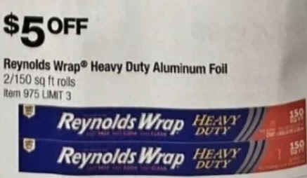 $5 off Reynolds Wrap Heavy Duty Aluminum Foil, 18 in x 33.33 yds, 2-count
