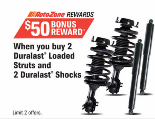 $50 Bonus Reward when you buy 2 Duralast Loaded Struts & 2 Duralast Shockers