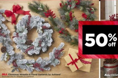 50% off ALL Christmas Wreaths & Floral Garlands by Ashland Excludes Pre-lit Wreaths & Garlands