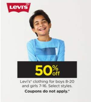 50% off Levi's Clothing for boys 8-20 and girls 7-16
