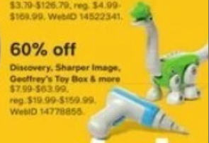 60% Off Discovery, Sharper Image, Geoffrey's Toy Box & more