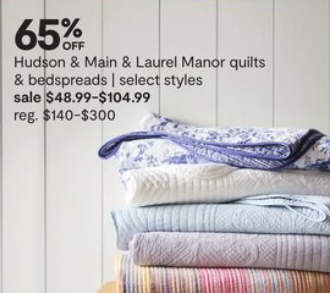 65% Off Hudson & Main & Laurel Manor quilts & bedspreads
