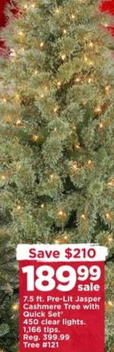 7.5ft. Pre-Lit Quick Set Jasper Artificial Christmas Tree, Clear Light